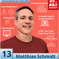 Ein Bürgermeister mit Herz und Verstand - das ist für mich als Familienmensch, Betriebsrat und engagierter Ehrenamtlicher nicht nur eine leere Phrase. Durch meine Erfahrung weiß ich, wie wichtig ein offenes Ohr für jeden ist, um zu erkennen, was die Menschen bewegt und für die Gemeinde wichtig ist, und werde genau das in das Amt einbringen. Bürgernah und sozial, für eine erfolgreiche, faire und gemeinschaftliche Zukunft unserer Gemeinde.